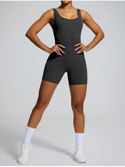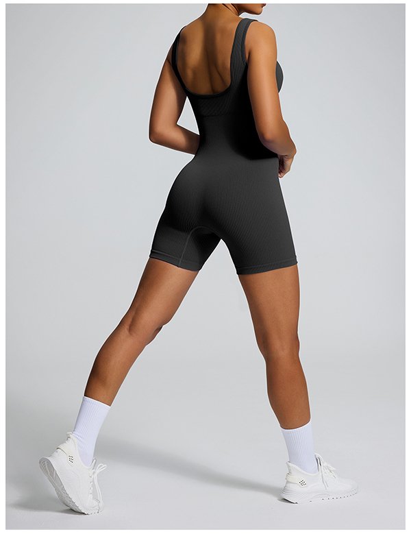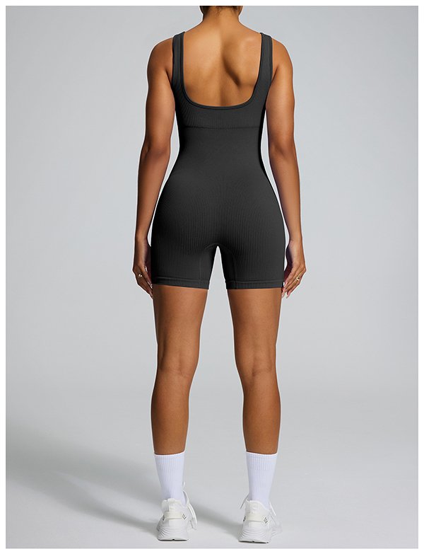 This minimal seamless romper features a wide square neckline and ribbed texture that contours your body with a second-skin feel. Perfect for yoga, workouts, or daily wear, it offers breathable stretch, moisture-wicking comfort, and a sleek, modern look.