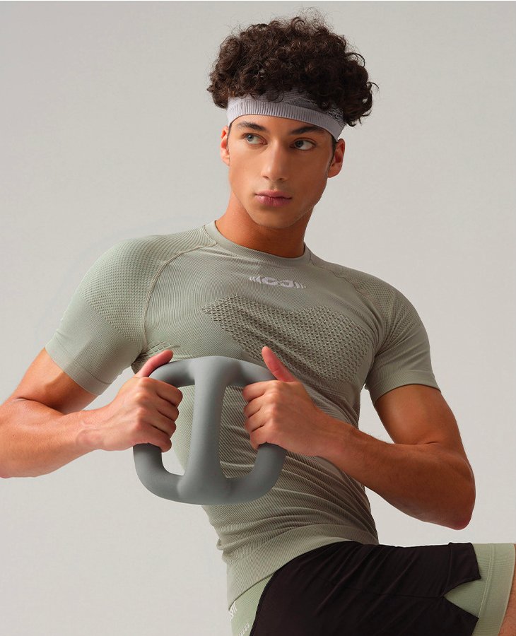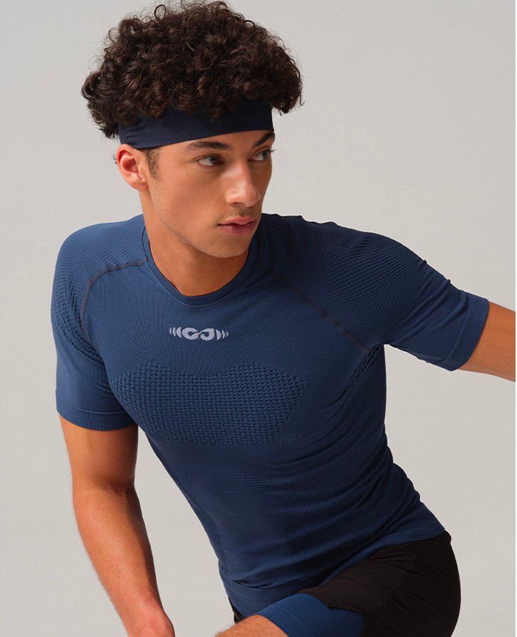 This men’s seamless compression sports t-shirt combines lightweight breathability with muscle support. Perfect for wholesale distribution, gyms, and sportswear brands.